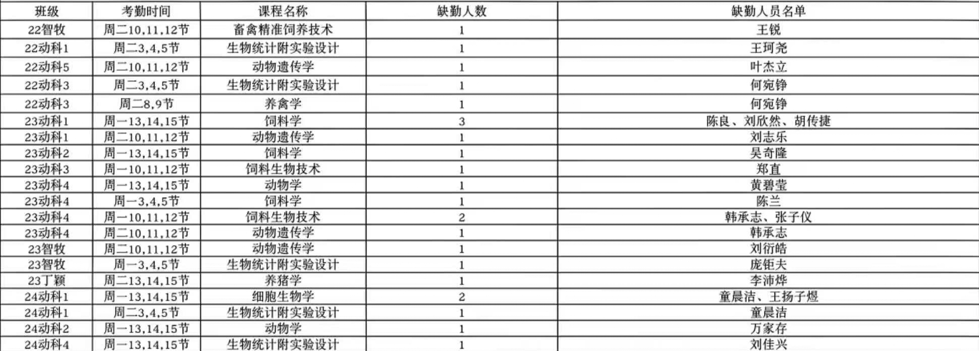希望以上缺勤学生能够认真反省,端正学习态度,自觉维护良好的教学秩序和课堂纪律。希望学院广大同学要引以为戒,共同营造优良学风院风。