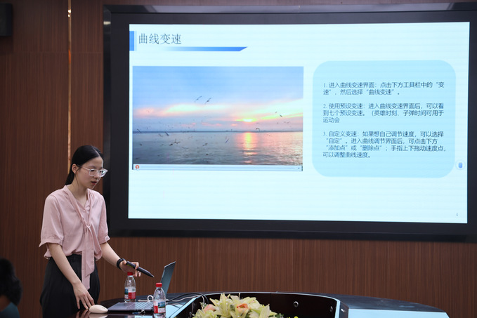 姚荣华以“实用剪辑技巧进阶”为核心主题,开展剪辑培训。她结合宣传工作实际需求,围绕“电影版开头制作”“电影版片尾设计”“曲线变速调节节奏”“遮挡物转场应用”等4项高频实用剪辑手法展开讲解。过程中,她通过“理论拆解+案例演示”的方式,让大家通过手机在现场直接剪辑视频素材,并逐一进行答疑指导。