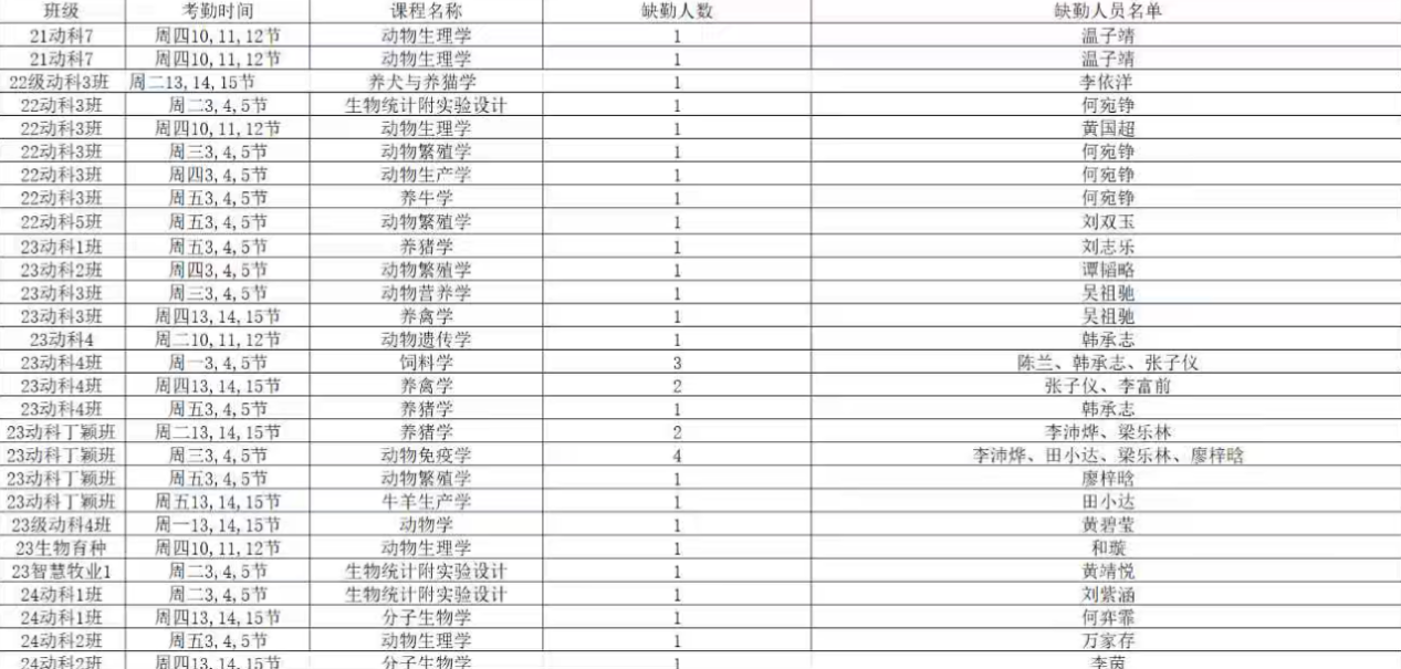 希望以上缺勤学生能够认真反省,端正学习态度,自觉维护良好的教学秩序和课堂纪律。希望学院广大同学要引以为戒,共同营造优良学风院风。