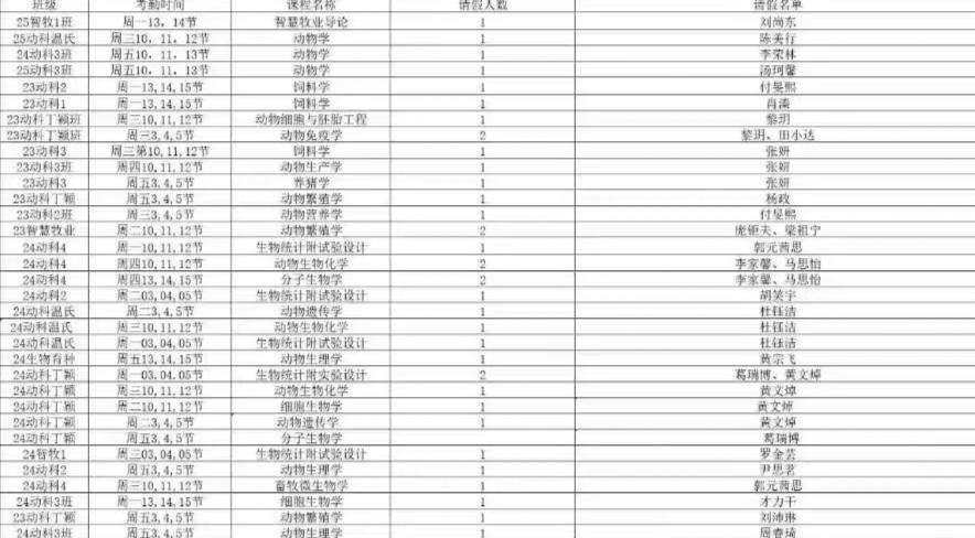 为强化课堂纪律,严肃学风学纪,进一步加强学风建设,营造优良学风院风,2025年11月10日—11月16日,我院教学信息学生委员会对本科生课堂出勤情况进行抽查,现将考勤结果公示如下(以下只列出缺勤班级情况,未列出的班级即为全勤)。