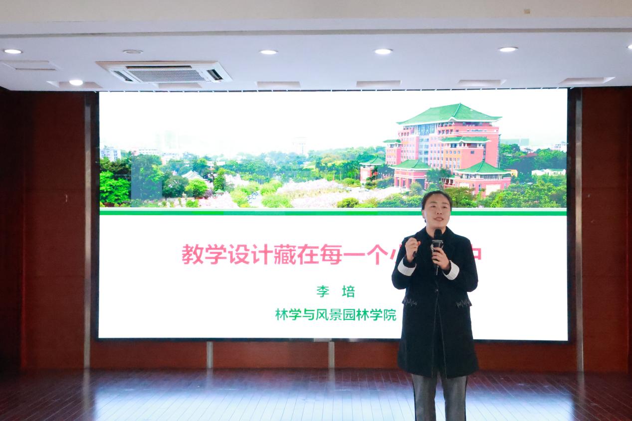 随后特邀林学与风景园林学院李培老师为全体教师作了题为“教学设计藏在每一个小巧思中”的精彩专题培训。李培老师结合自身丰富的教学实践和研究成果,从教学理念的更新、教学目标的精准设定、教学内容的巧妙构思、教学方法的多样化运用以及教学评价的科学实施等多个维度,深入浅出地剖析了优秀教学设计的核心要素。她通过一个个生动鲜活的案例,分享了如何在日常教学中融入创新元素,激发学生学习兴趣,提升课堂教学效果的实用技巧和宝贵经验。李培老师的讲座内容丰富、见解独到,既有理论高度又有实践深度,赢得了在场教师的热烈掌声和高度评价。