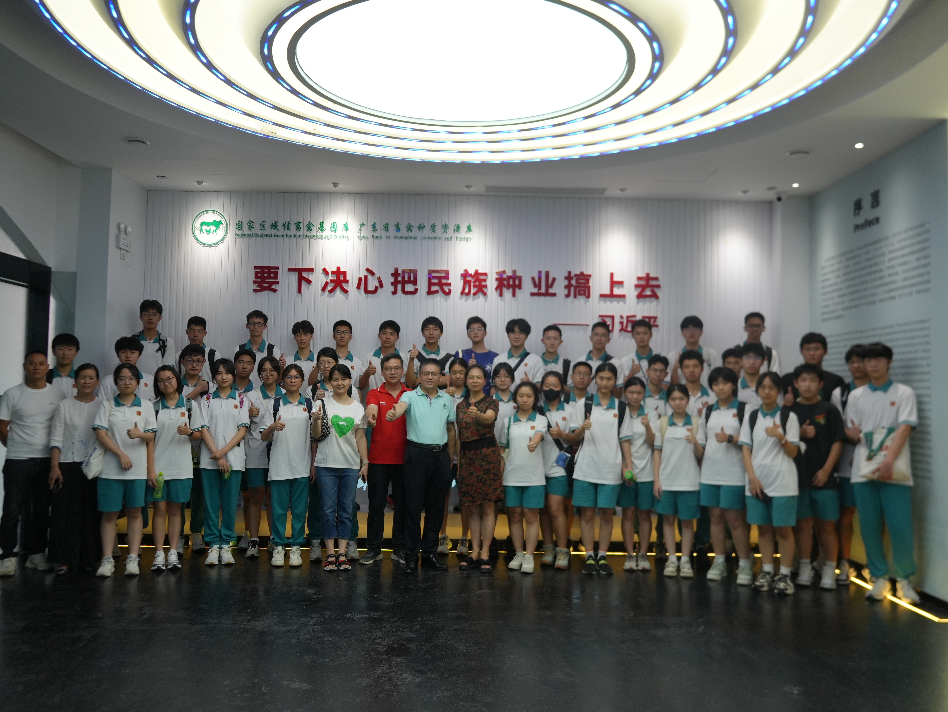 2025年7月10日,广州市第二中学高二师生代表走进华南农业大学动物科学学院国家区域性畜禽基因库暨广东省畜禽种质资源库。本次活动旨在让中学生近距离感受畜禽种业科技前沿,理解生物遗传资源保护的重要意义,并体验岭南特色畜禽文化与农耕文明。