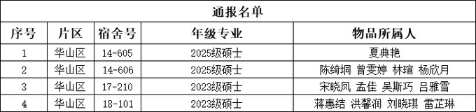 本通报公示截止至2026年1月2日12:00。公示期内,如有异议,请实名联系所在年级辅导员,并提供物品所属人姓名。