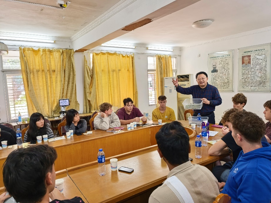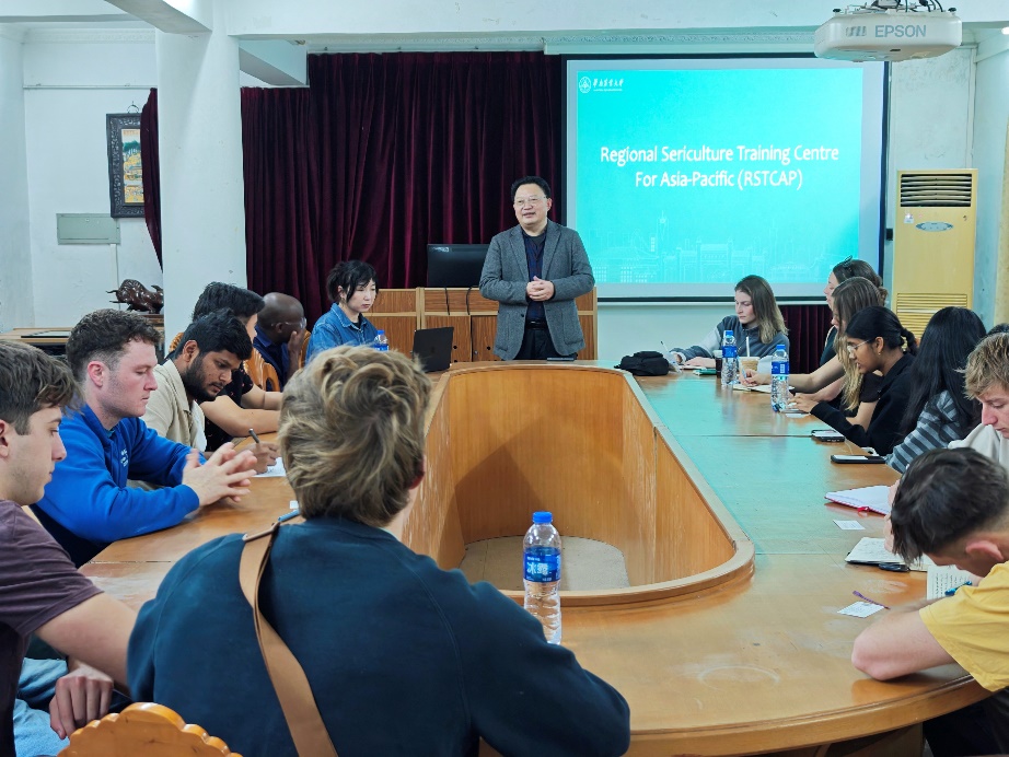 刘吉平为学生们介绍中国蚕桑文化及亚太地区蚕桑培训中心