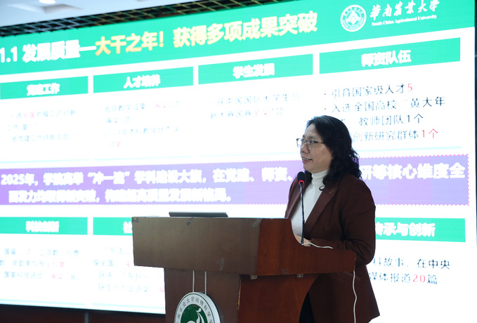 会上,院长谢青梅教授所作的题为《挺膺担当谋发展乘势而为启新程》的学院2025年度工作总结汇报。报告系统梳理了过去一年学院在提升整体发展质量方面取得的显著进步,并从三个方面进行了详细阐述: