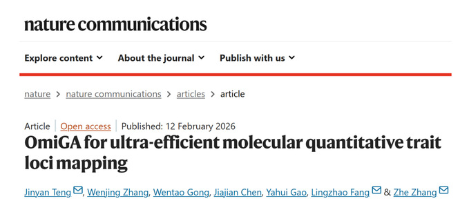 近日,猪禽种业全国重点实验室、华南农业大学动物科学学院张哲教授团队在国际顶级学术期刊《自然-通讯》(Nature Communications,IF5=17.2)在线发表题为“OmiGA for ultra-efficient molecular quantitative trait loci mapping”的研究论文。团队成功研发出基于线性混合模型的高性能分子数量性状基因座(分子QTL)定位方法OmiGA(官网:https://omiga.bio/)。该方法针对家养动物复杂亲缘关系群体的分子QTL定位难题实现突破,在运算效率、因果变异鉴定准确性上表现优异,全方位超越主流分析方法。
