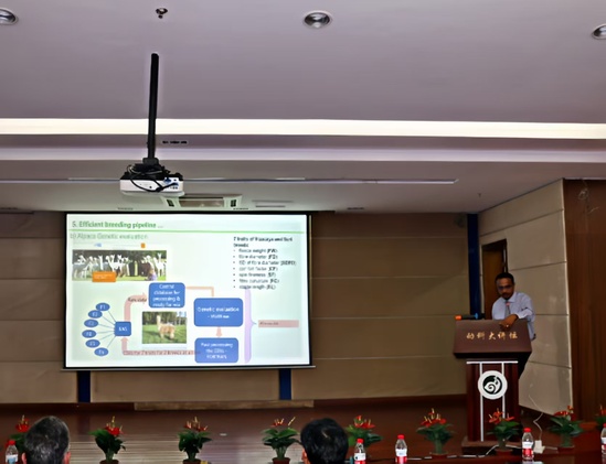 随后,Getinet M.Tarekegn教授带来题为《Tools and infrastructures for implementing Genomic selection in Livestock》的专题分享。他聚焦当前家畜遗传评估与基因组选择技术的产业化应用痛点,重点介绍了热带地区牛遗传改良的技术路线优化、核心选择位点筛选策略,以及区域化基因组育种平台的搭建方案与实践案例。报告内容既覆盖了数量遗传学的前沿理论突破,也结合了大量育种场实际应用数据,对国内热带畜禽遗传改良工作极具参考价值。