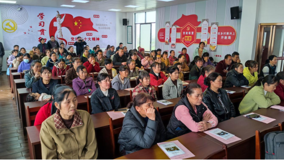 图为河池市宜州区桑园春耕科技培训会上养蚕农户在听课