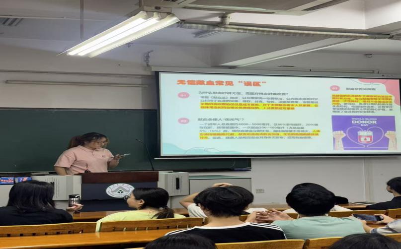 随后,红十字会带来了一场内容丰富的健康科普讲解。红十字精神与无偿献血:首先介绍了红十字运动的起源与宗旨,重点讲解了无偿献血的意义、献血条件与注意事项,消除了同学们对献血的常见误区,鼓励大家在力所能及时加入献血队伍,用热血为生命接力。