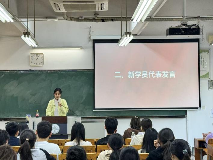 25级动物科学(温氏班)李默作为新学员代表登台发言,她分享了自己对青马班的憧憬与理解,结合自身入党积极分子的身份和农科专业背景,从夯实理论基础、践行强农兴农使命、发挥模范带头作用三个方面作出学习规划,表达了珍惜学习机会、淬炼青马品格、勇担民族复兴大任的坚定决心。