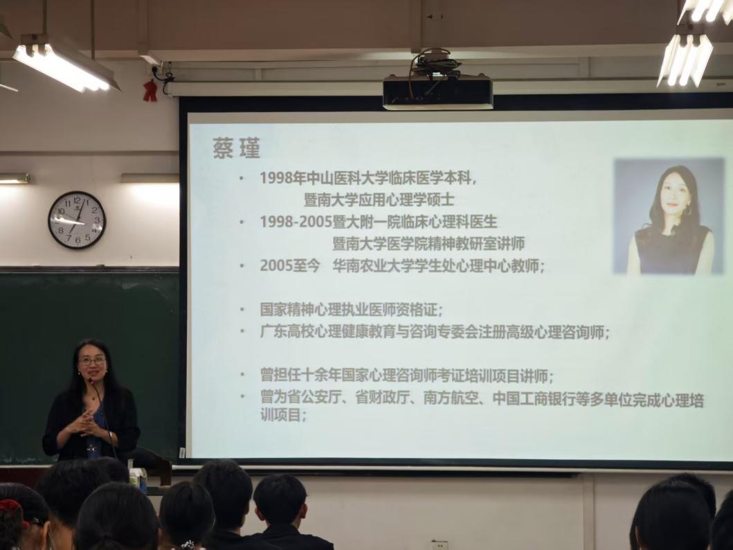为进一步强化宿舍长心理健康教育职责,提升宿舍心理关怀与沟通支持能力,营造和谐稳定的宿舍氛围,2026年4月12日,学院在教三401教室开展宿舍长心理健康教育专项培训,本次培训特邀学校心理中心蔡瑾老师主讲,全院本科生及研究生宿舍长参与学习。
